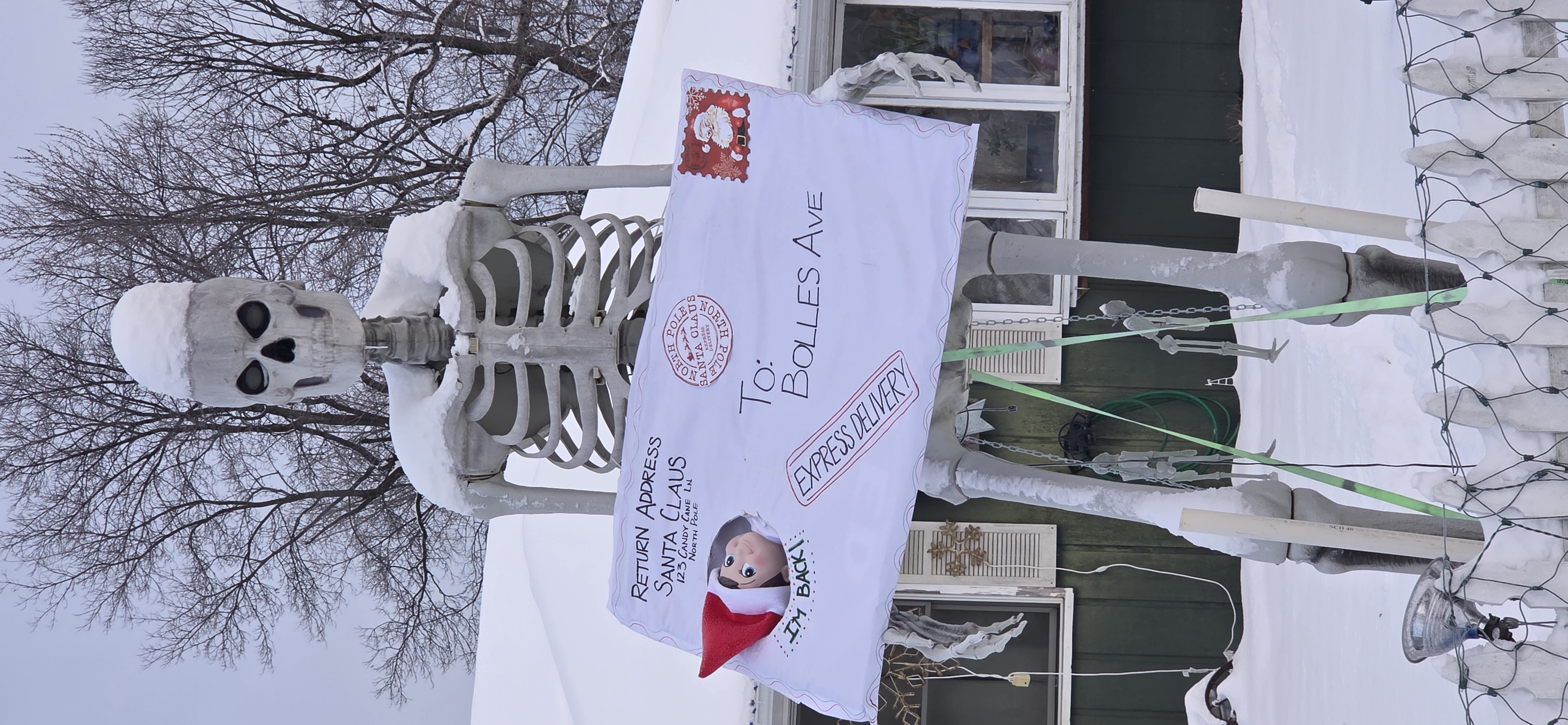 Someone turned an old schoolhouse into their home and they have a holiday display that is second to none. The vintage decorations in front of the building reminds us of holidays past. Wonderful to see and it’s right on your way to Christmas Tree Lane! Don’t forget to honk if you like, because every time you honk, an angel gets its wings!