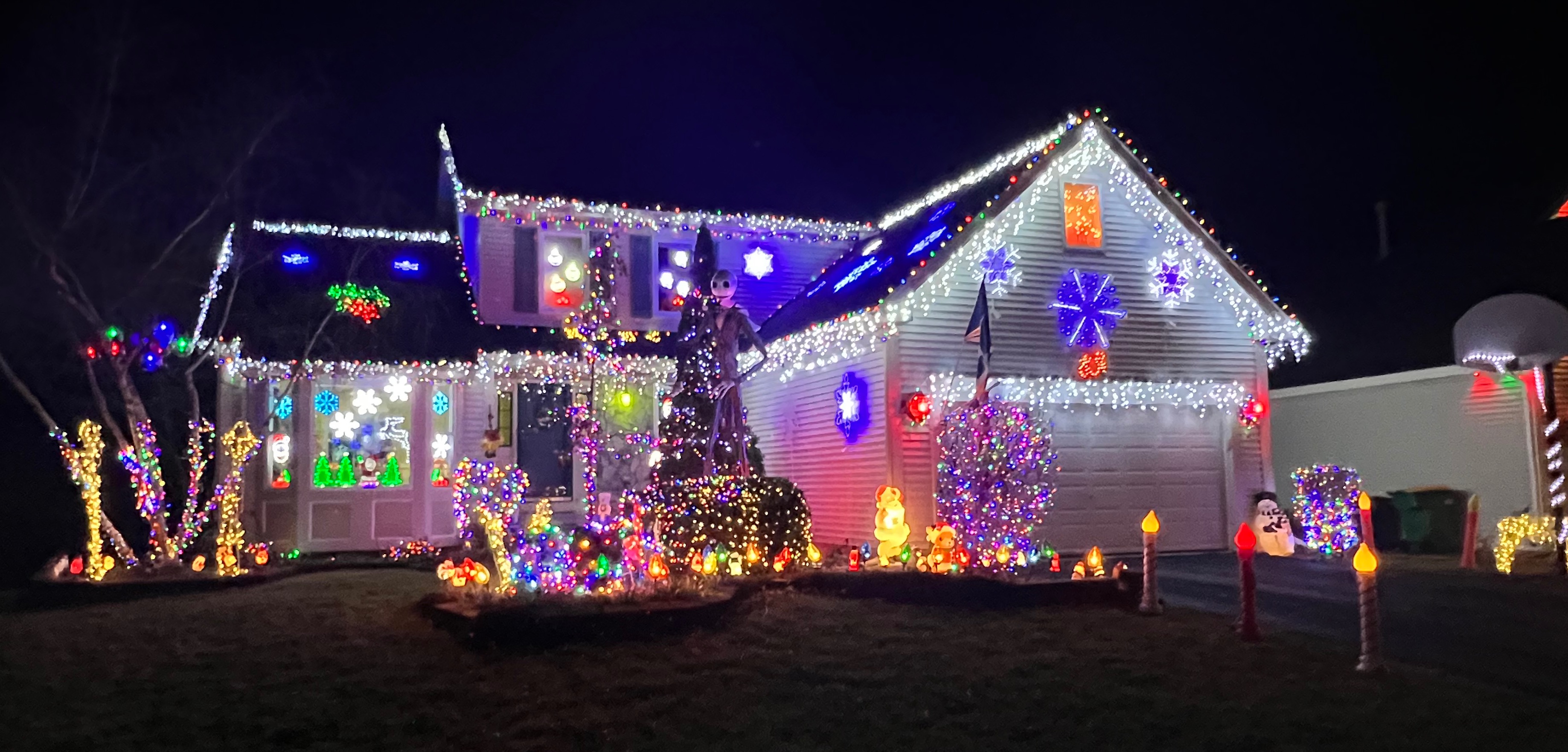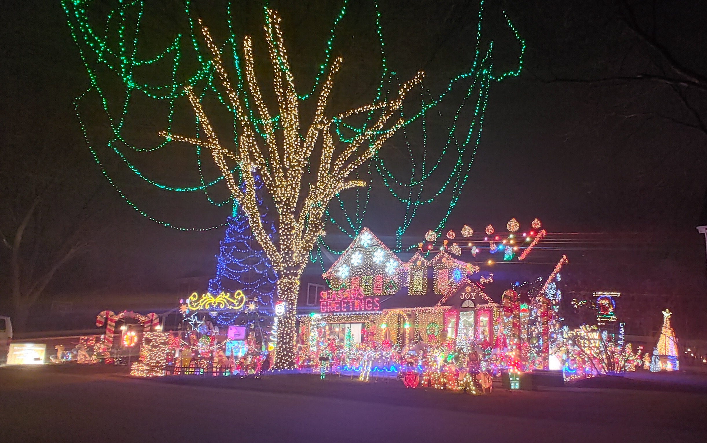 This display is the winner of the 2024 ABC7 Great Chicago Light Fight. There is so much to see, such as life size animatronics, a life size sleigh, handmade wood cutouts, 13ft Jack Skellington, a train village, blow molds, and more. This is a must see!