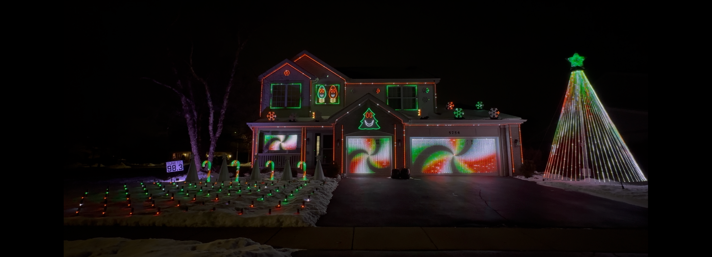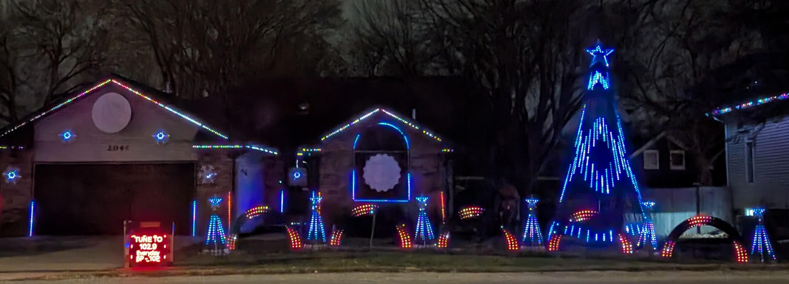 Over 10,000 color changing lights along with aerial effects synchronized to music on 89.3 FM.