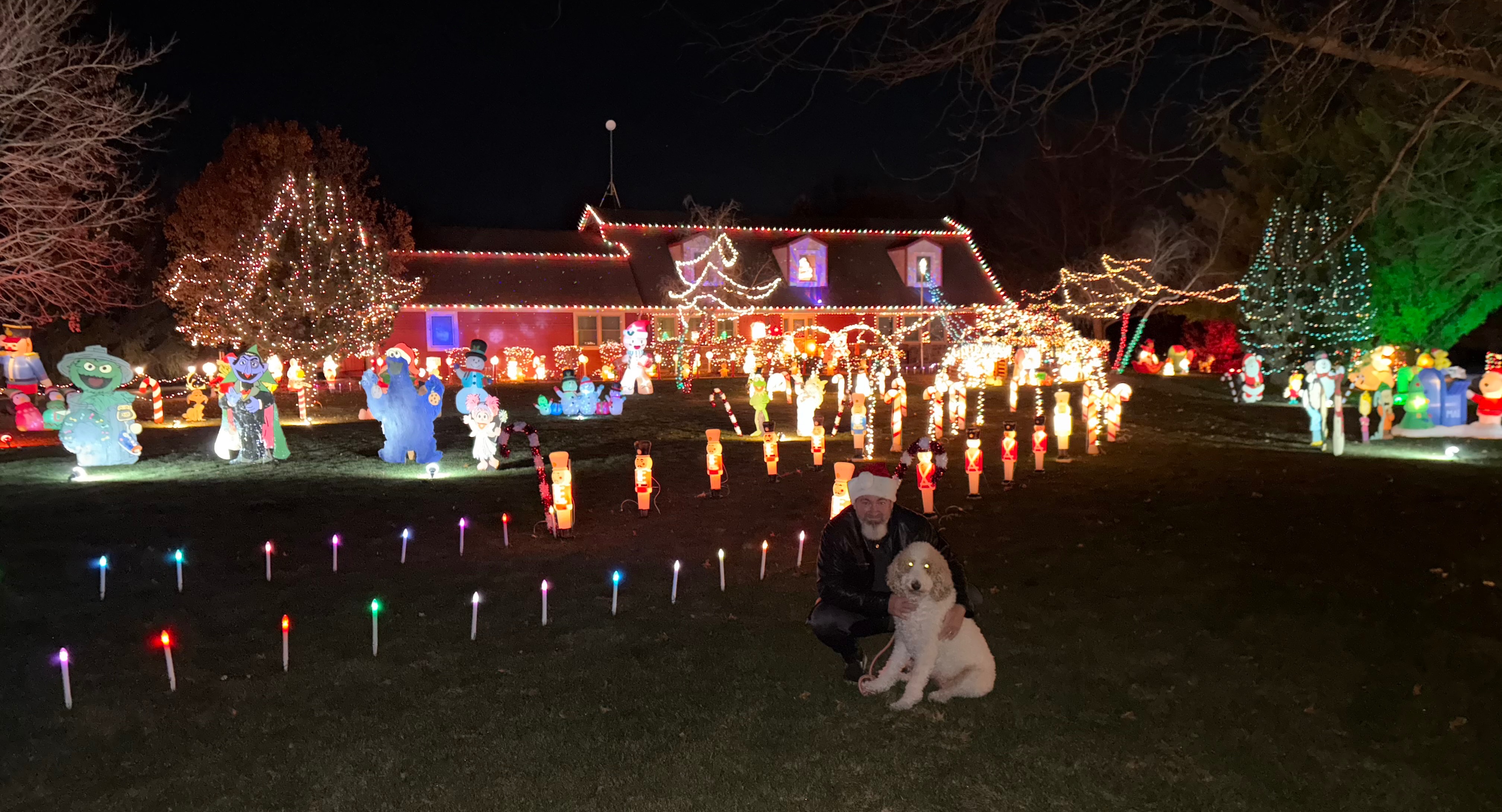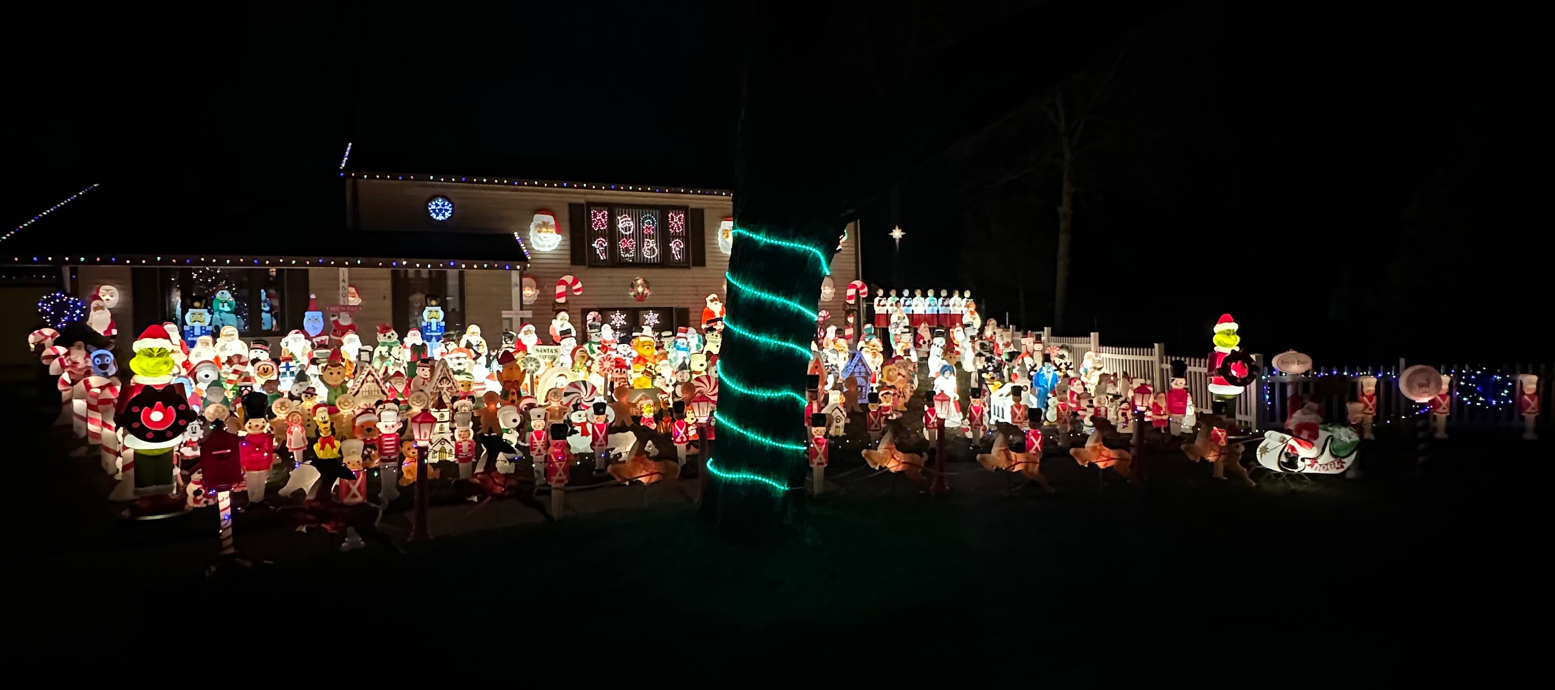 Featuring over 165 blow molds and 10,000 lights. They have several rare and vintage blow molds on display and even incorporate their children's playhouses into the display.