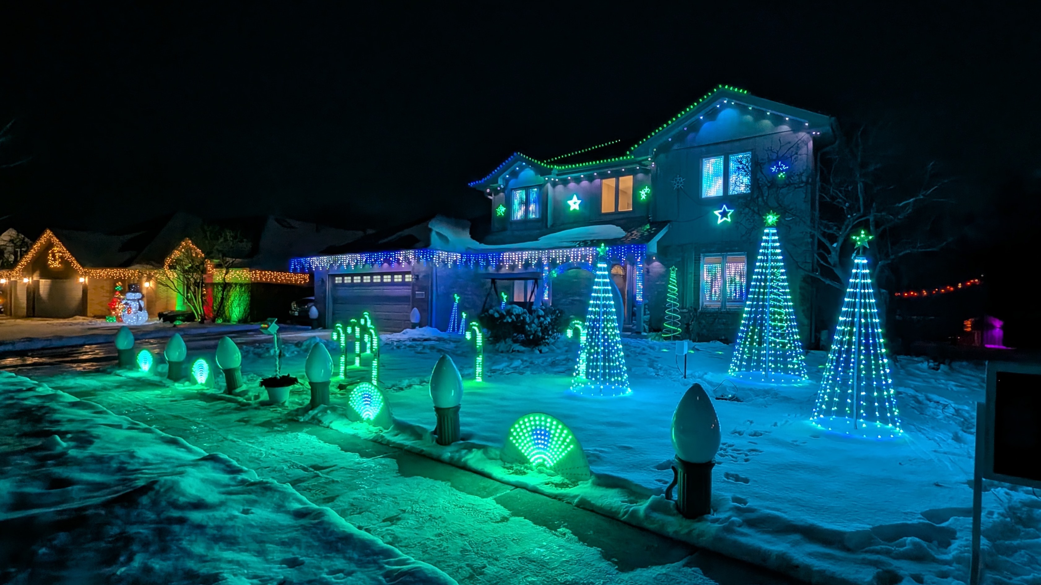 From 2024: Static display and some digital decorations. One decoration is weather permitting.