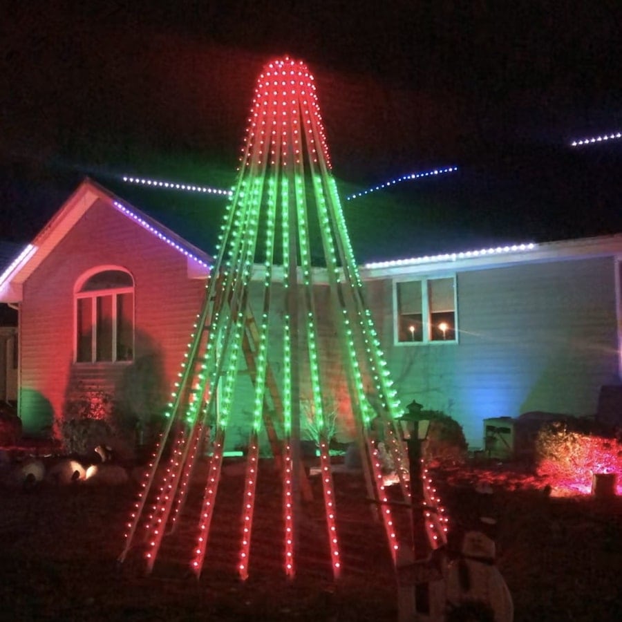 Over 10,000 color changing lights along with aerial effects synchronized to music on 89.3 FM.