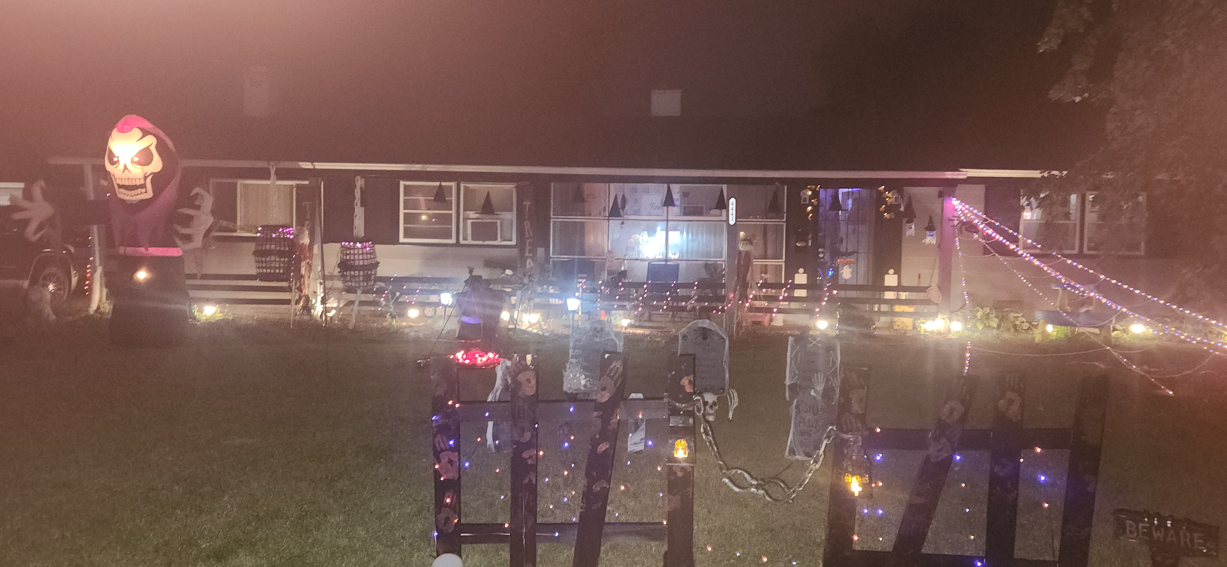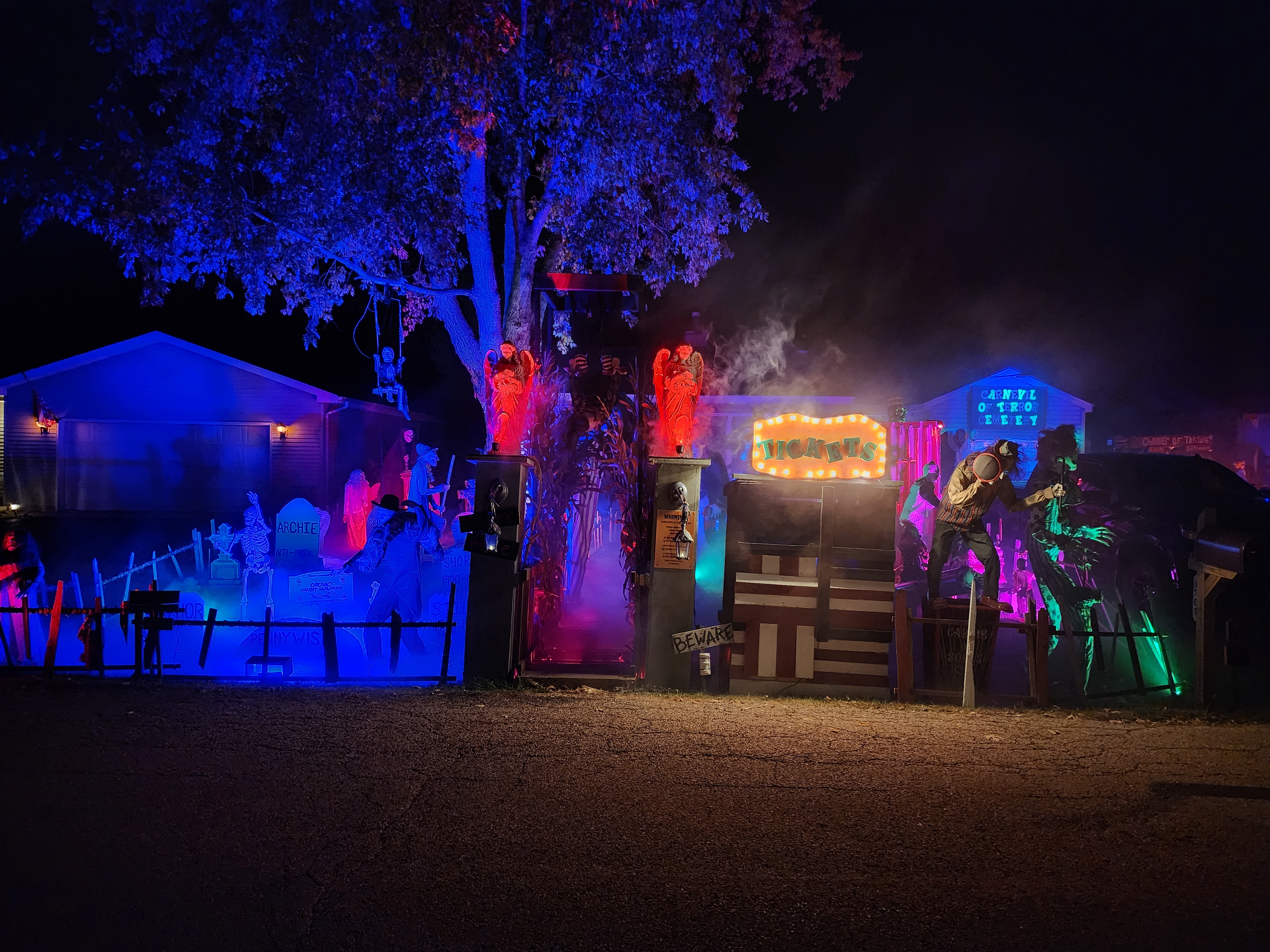A yard haunt with many static and animatronic props from fan favorites Saw, scream, Chucky and many more! The return of the Taylor swift willow witch, massive spiders take over and clowns wanting you to try the claw game and more surprises!