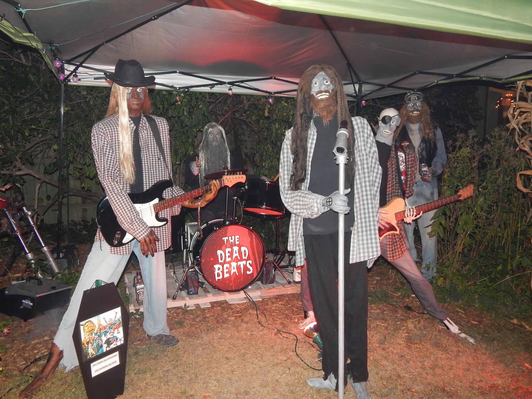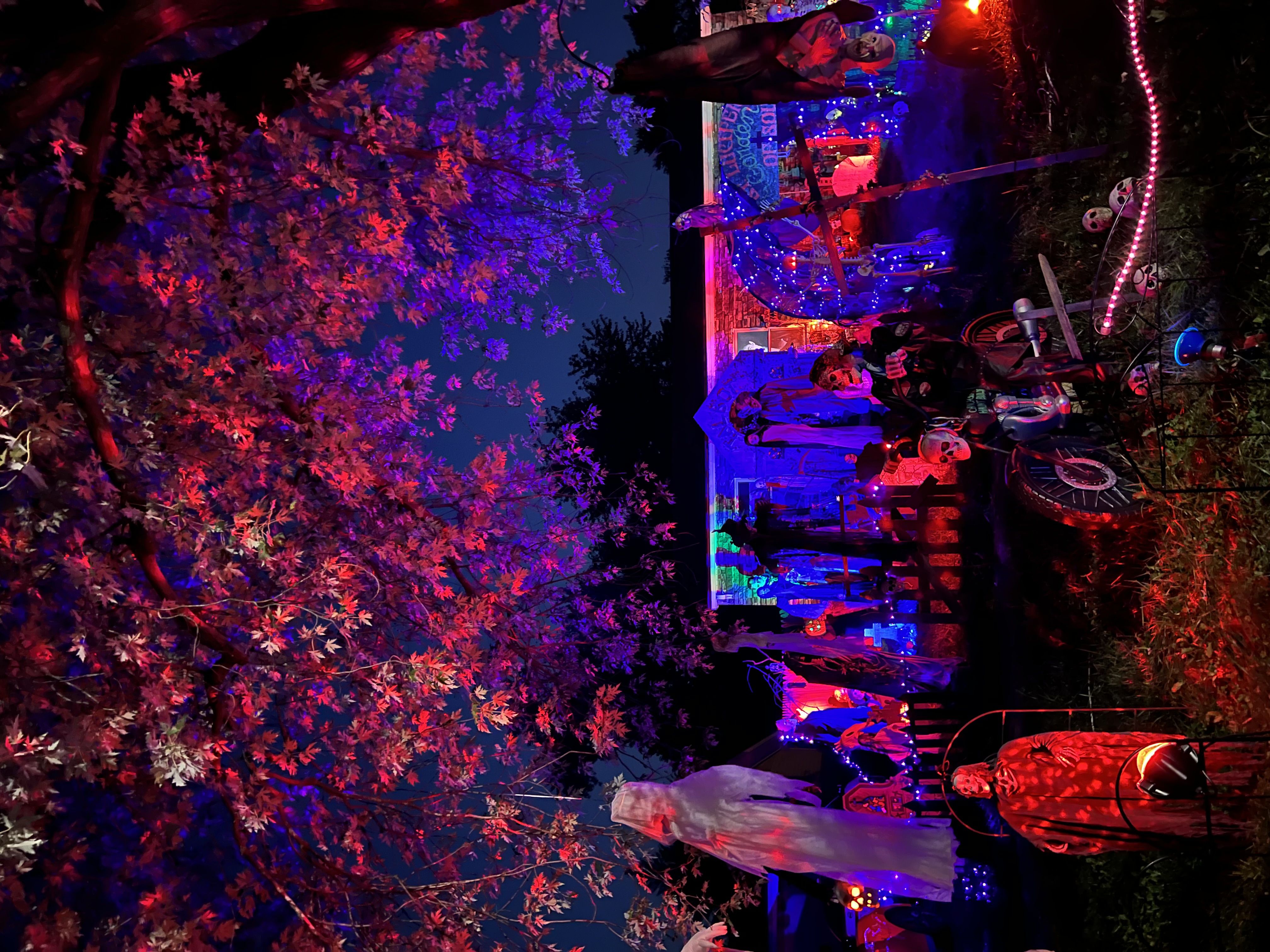 The Duffs set up a music festival for the undead. Catch one of the 3 musical acts performing daily. DJ Bones is on the dancefloor, the musical stylings of the jazz duo Bone-Jangles on the lounge area, and on the main stage the Reaper Band performing nightly from 6-8pm. Kids and families are invited to walk through to take pictures! They enjoy sharing their love of Halloween with the community.
