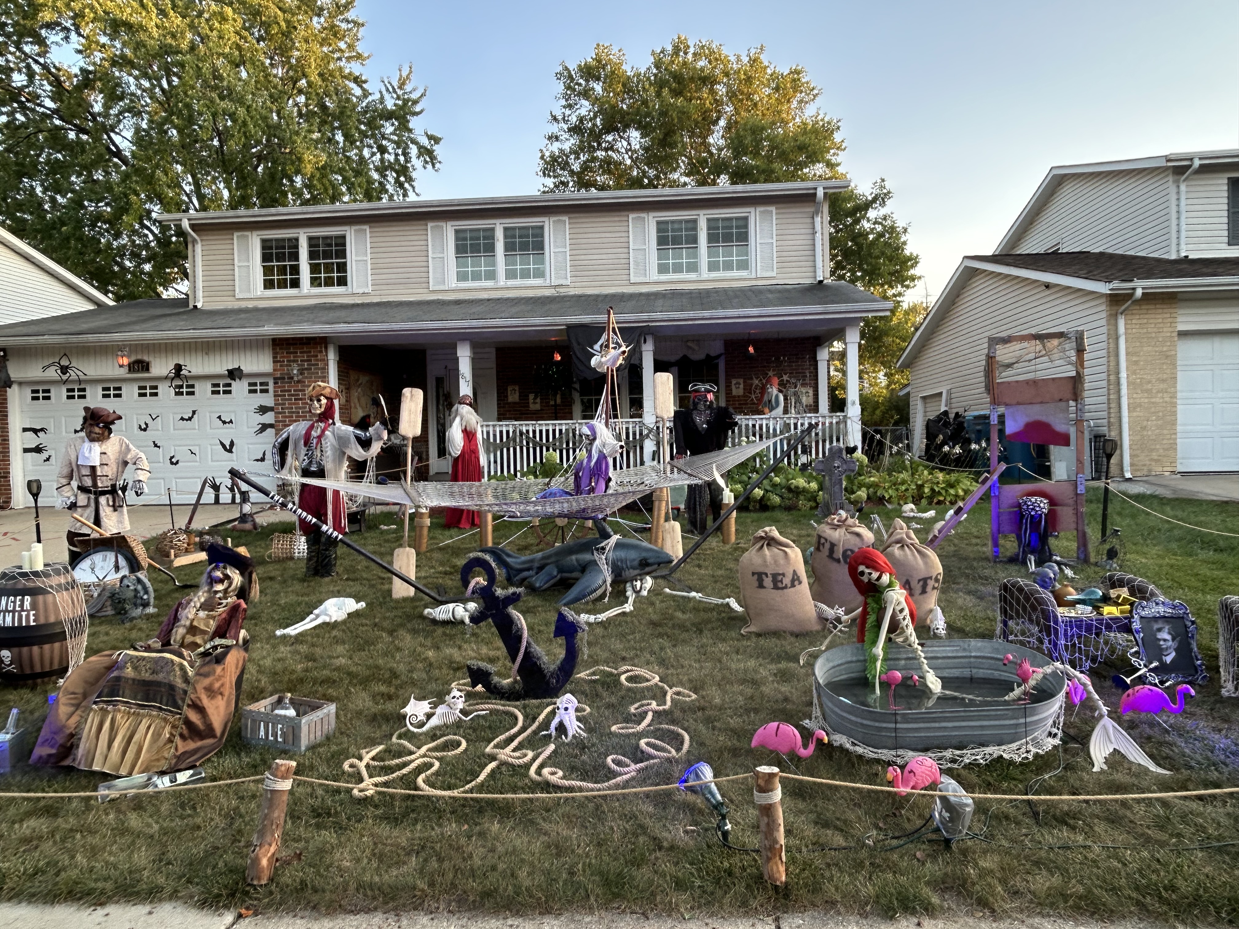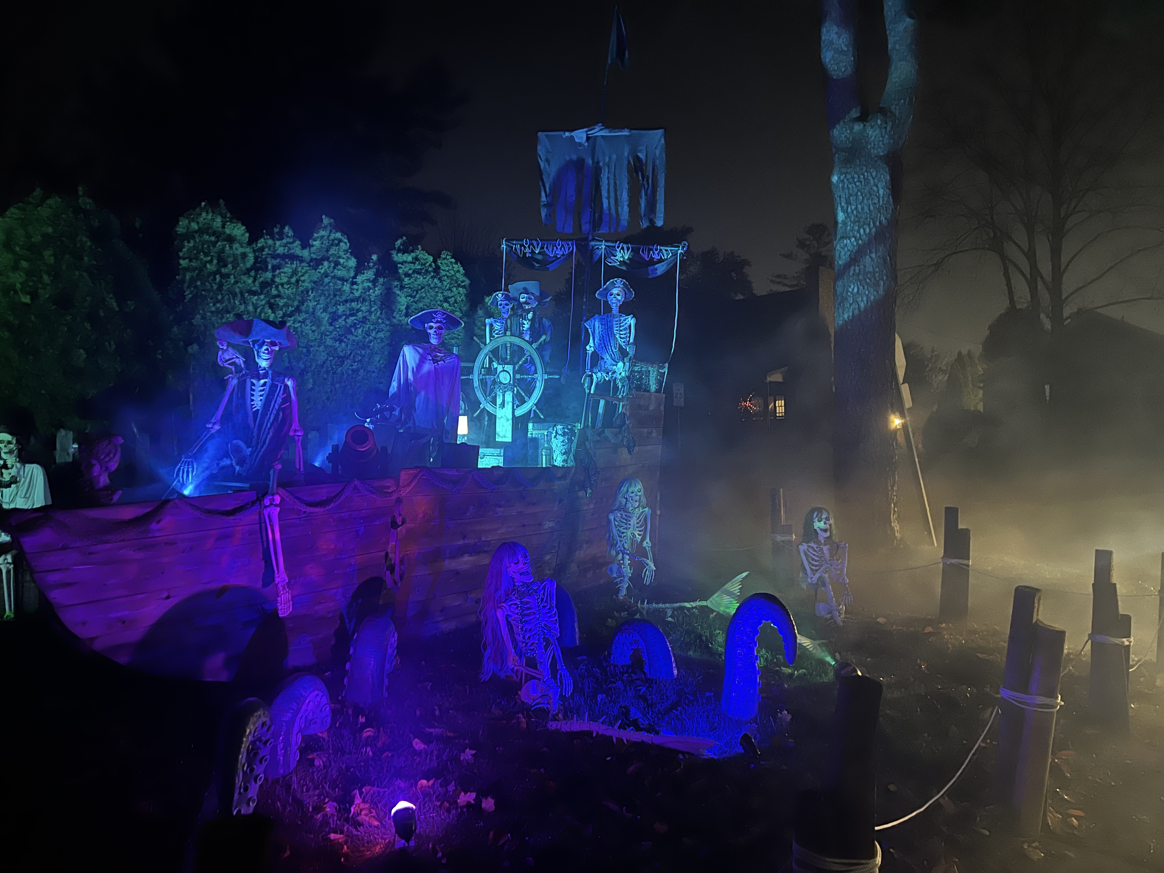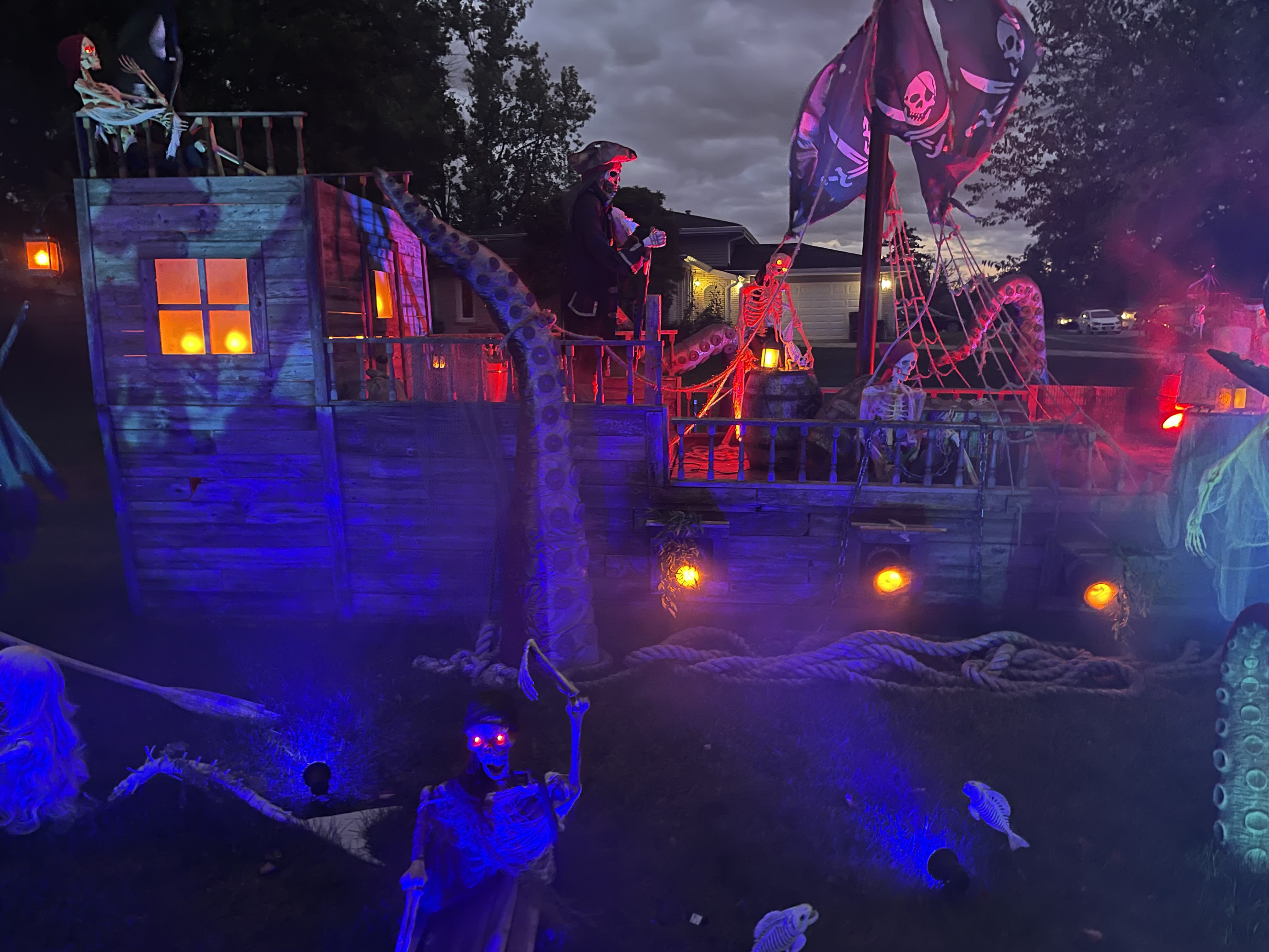Yo Ho ye land lovers! Our swashbuckling scallywag pirate crew is ready for Halloween 2025! Our lights and effects will be on starting on October 1st from 5pm till 11:30pm
