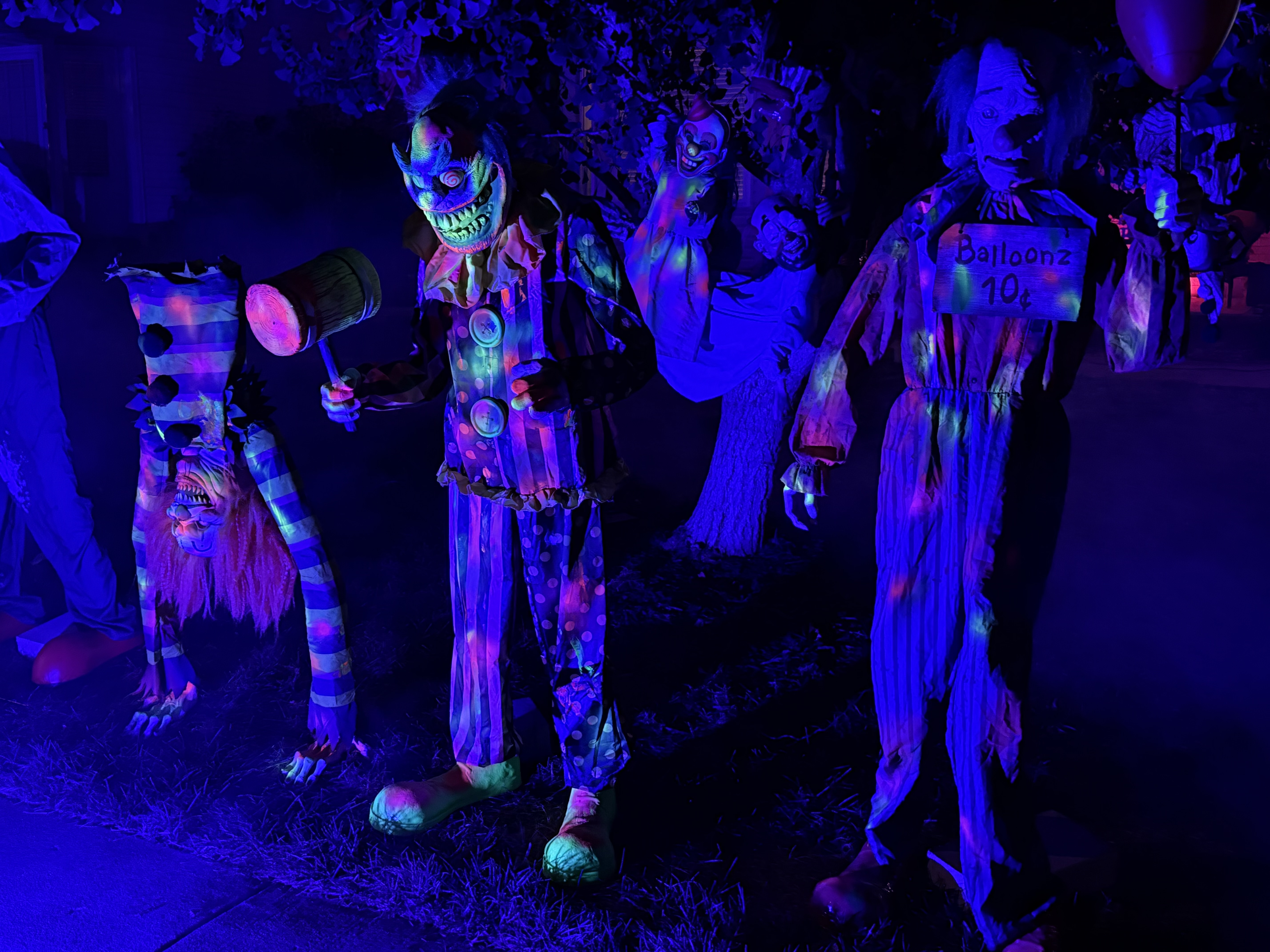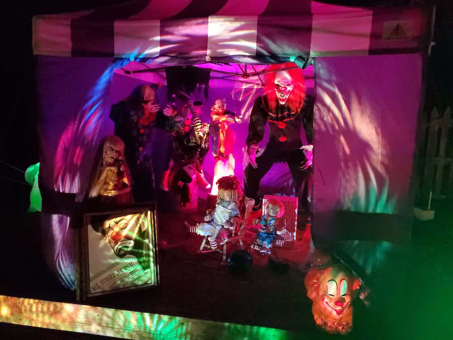 Witches, mad scientists, clowns, ghosts and more! Animatronics lights and sound! Occasionally you will see live actors!
