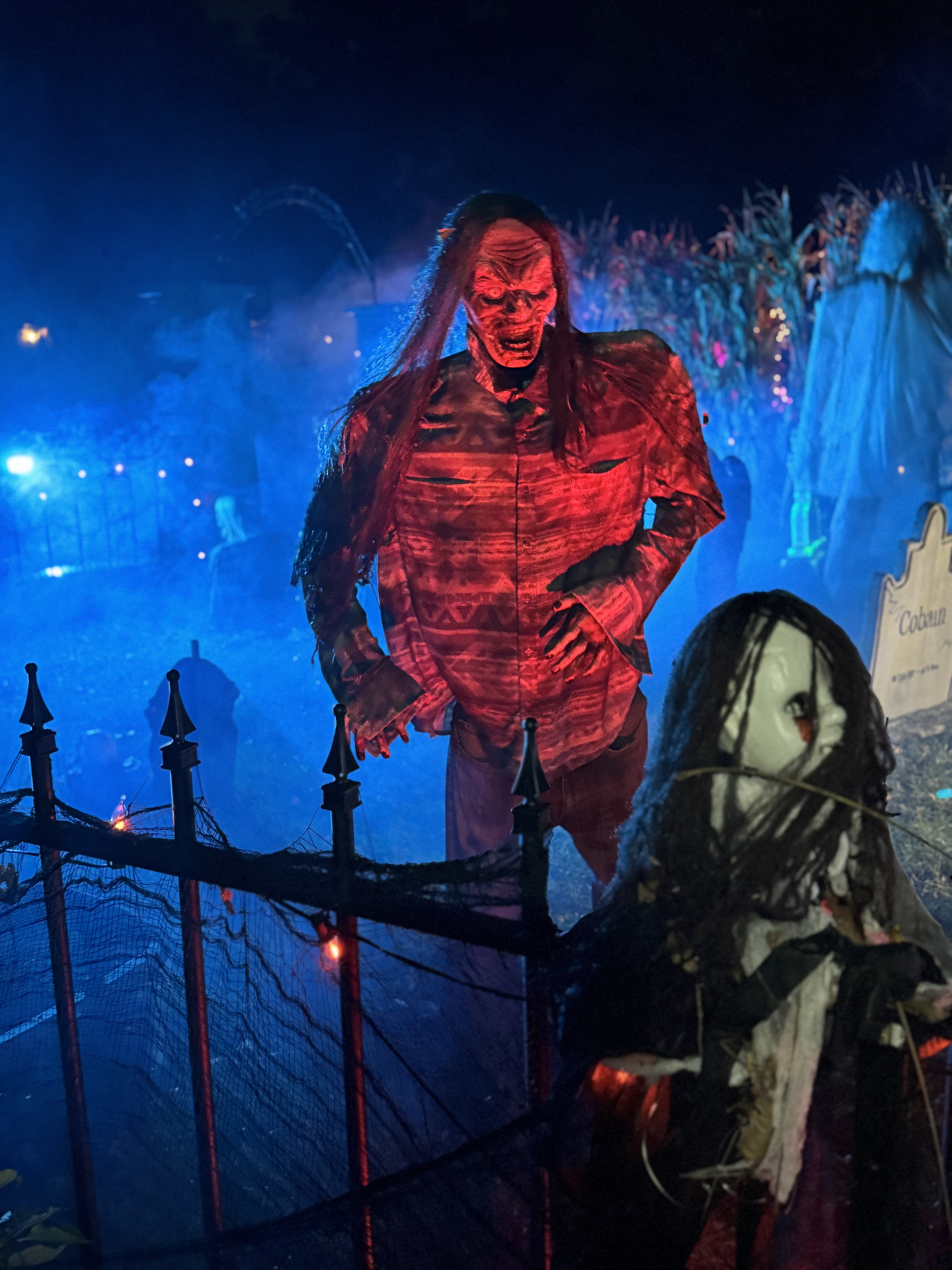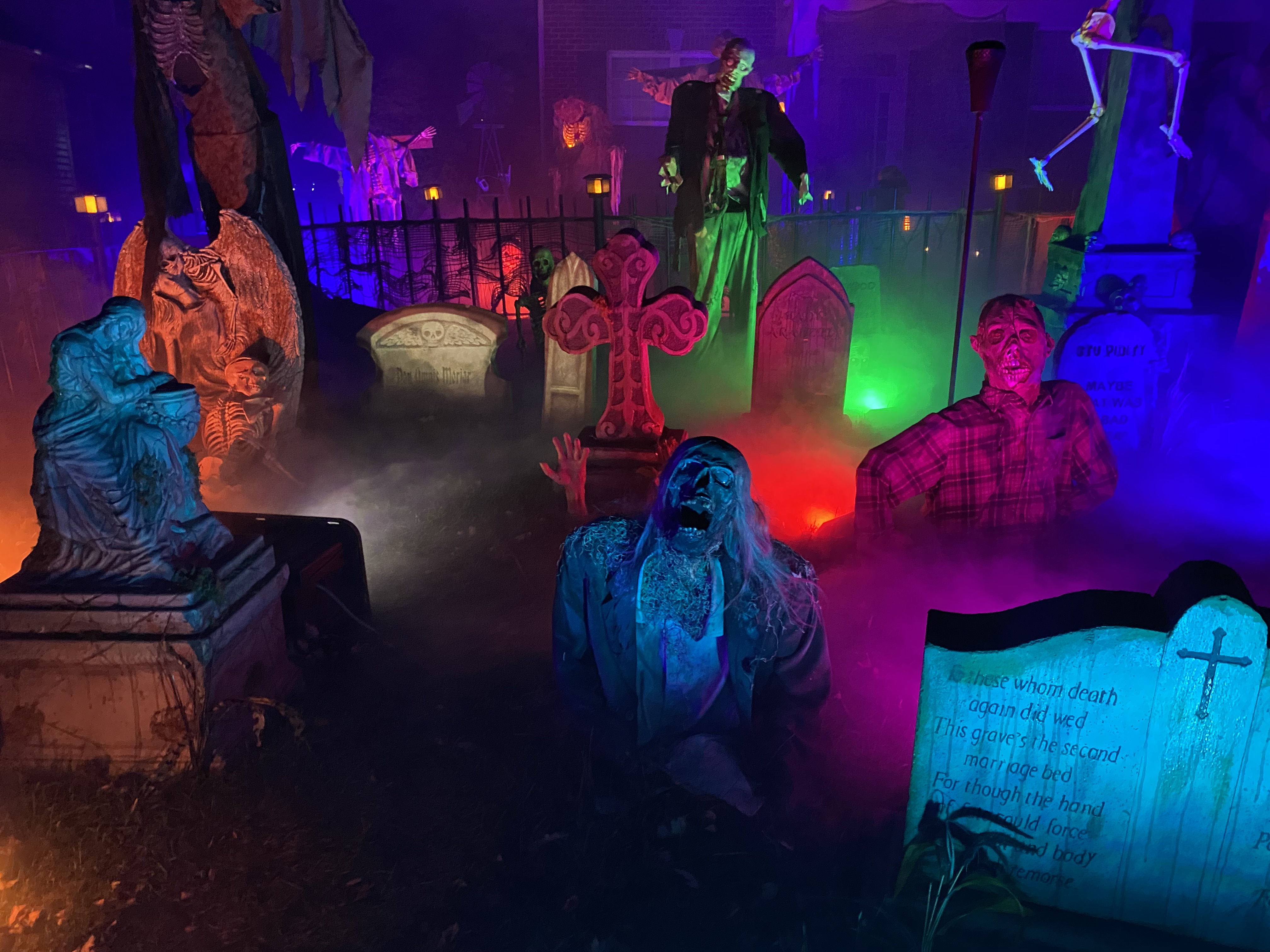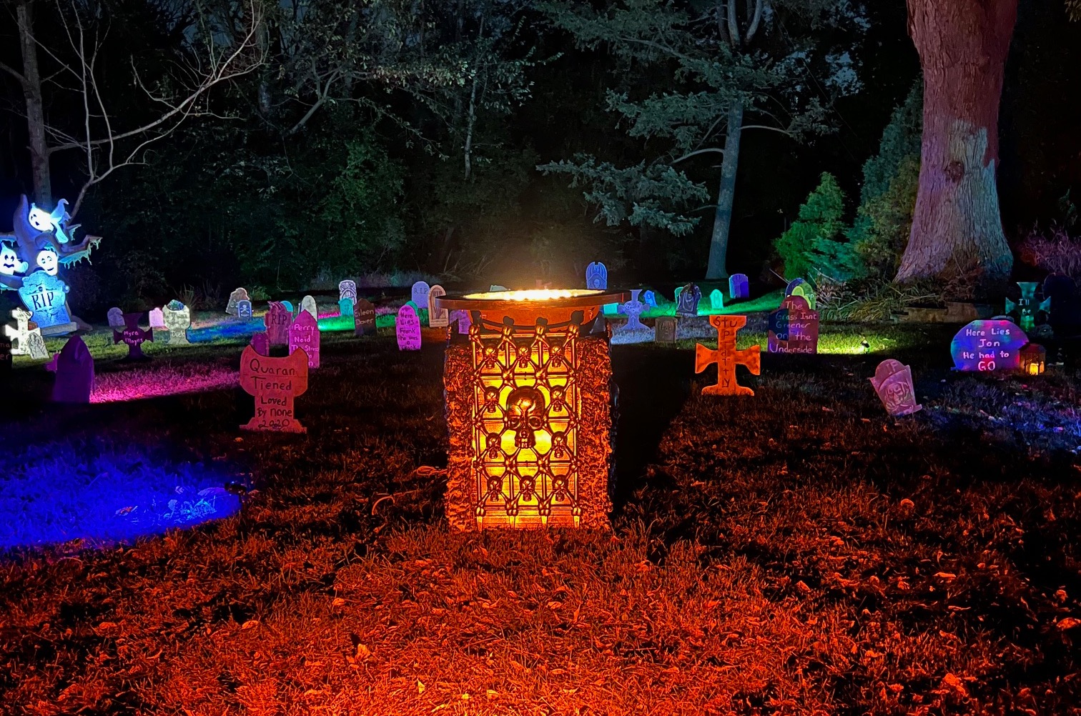 Enjoy the light show, graveyard and new to 2025, the Haunted Asylum and Playground!