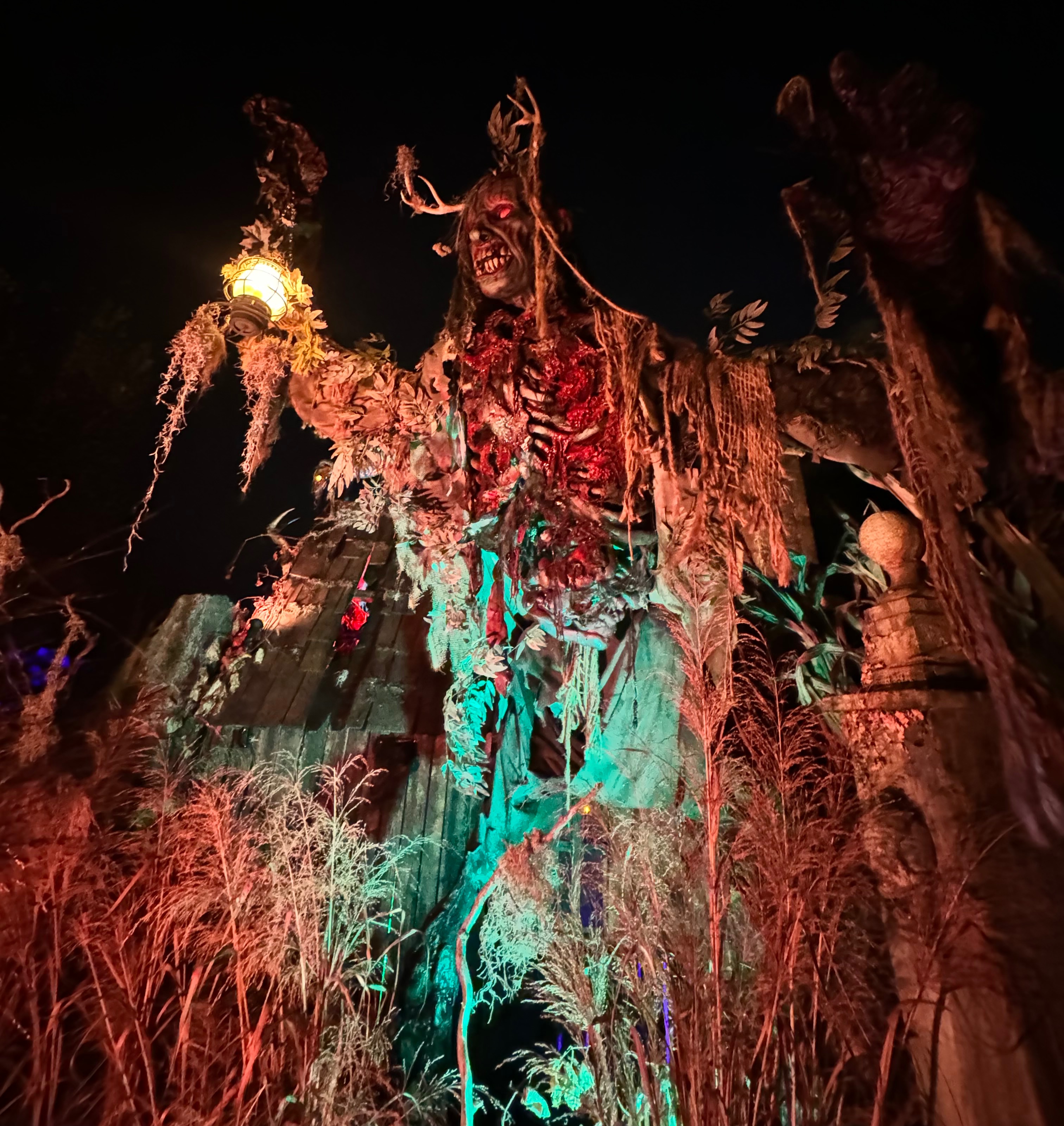 All animatronics are lined up along the sidewalk, allowing for a haunted walk-thru.