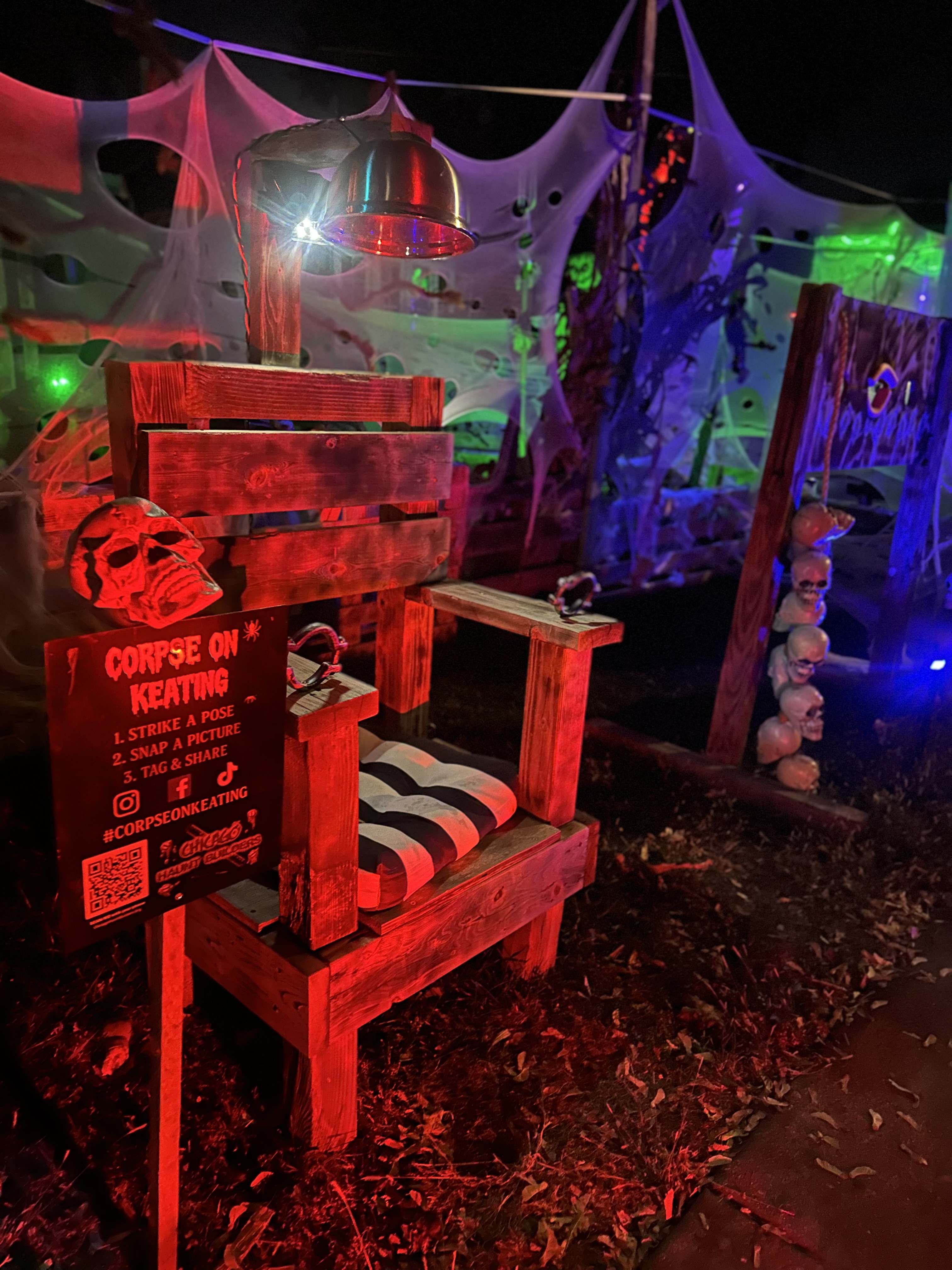 The Crypt of Kipling Estates is a family-friendly display haunt. The Crypt features skeletons invading the house, characters from Nightmare Before Christmas, motorized animatronics and more. Don’t forget to take your picture in one of our many photo-op’s and electric chair! Donations being collected for Triple Negative Breast Cancer Research.