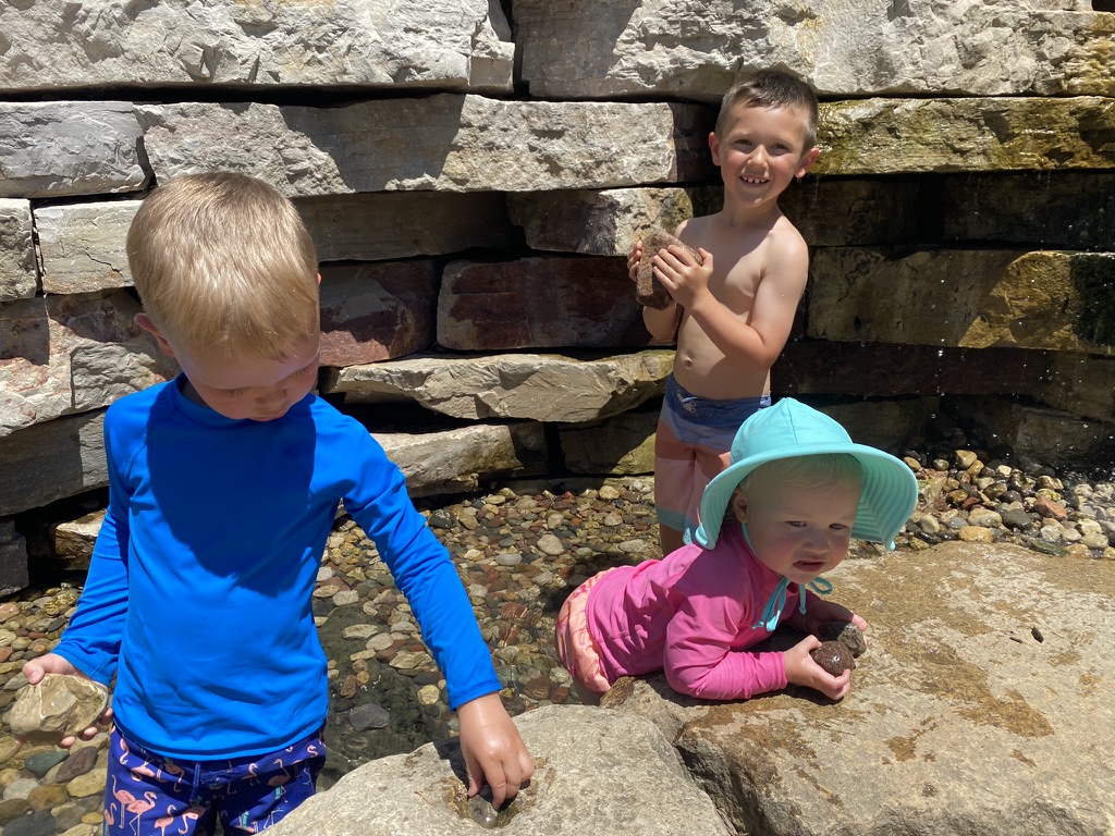 Over three miles of paths wind through prairie and wooded scenery, with regular “Play Pockets” set up with natural materials like stumps and logs set up in ways that encourage kids to stop and play. Spring Valley is a great choice if your kids like to have a destination for their walks, like trying to spot the log cabin or walking from the parking lot near the farm to the nature center. The trail map is very helpful.