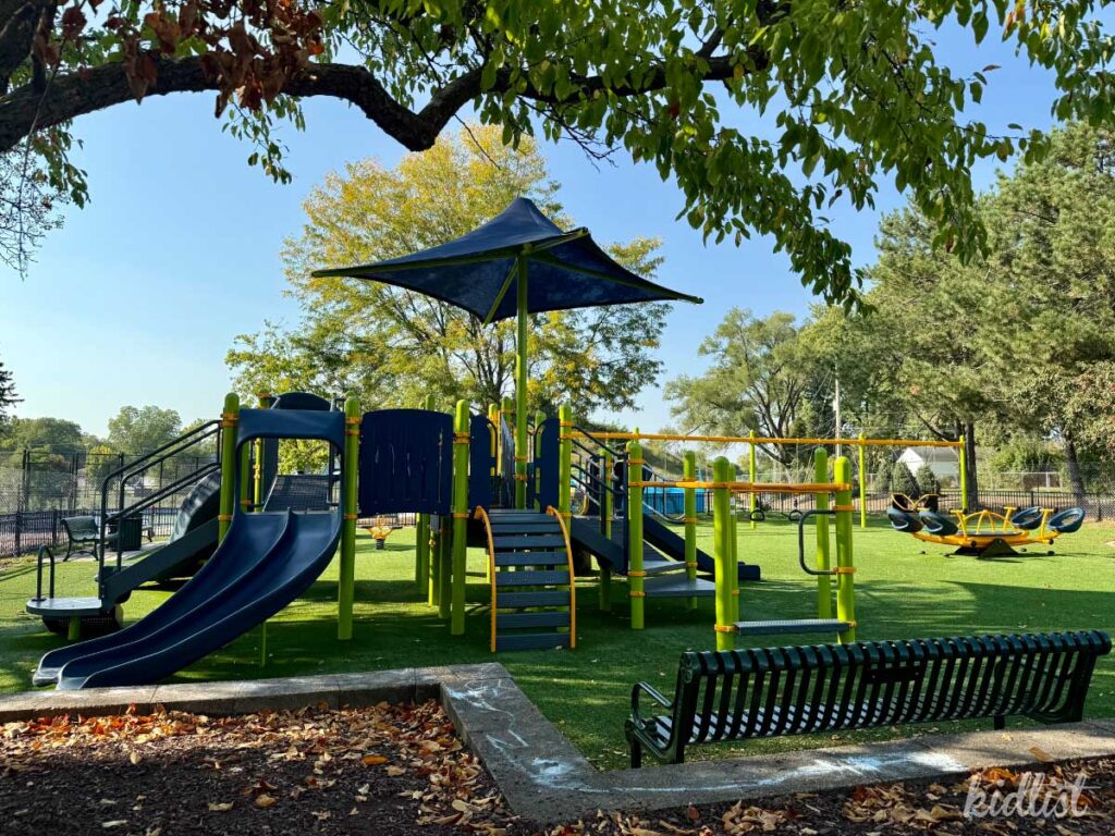 There is also an existing fenced-in tot playground designed for ages 2-5 years old that is open to the public when not in use by their preschool and before and after school care (they reserve it between 9:50am – 1:30pm during the week).