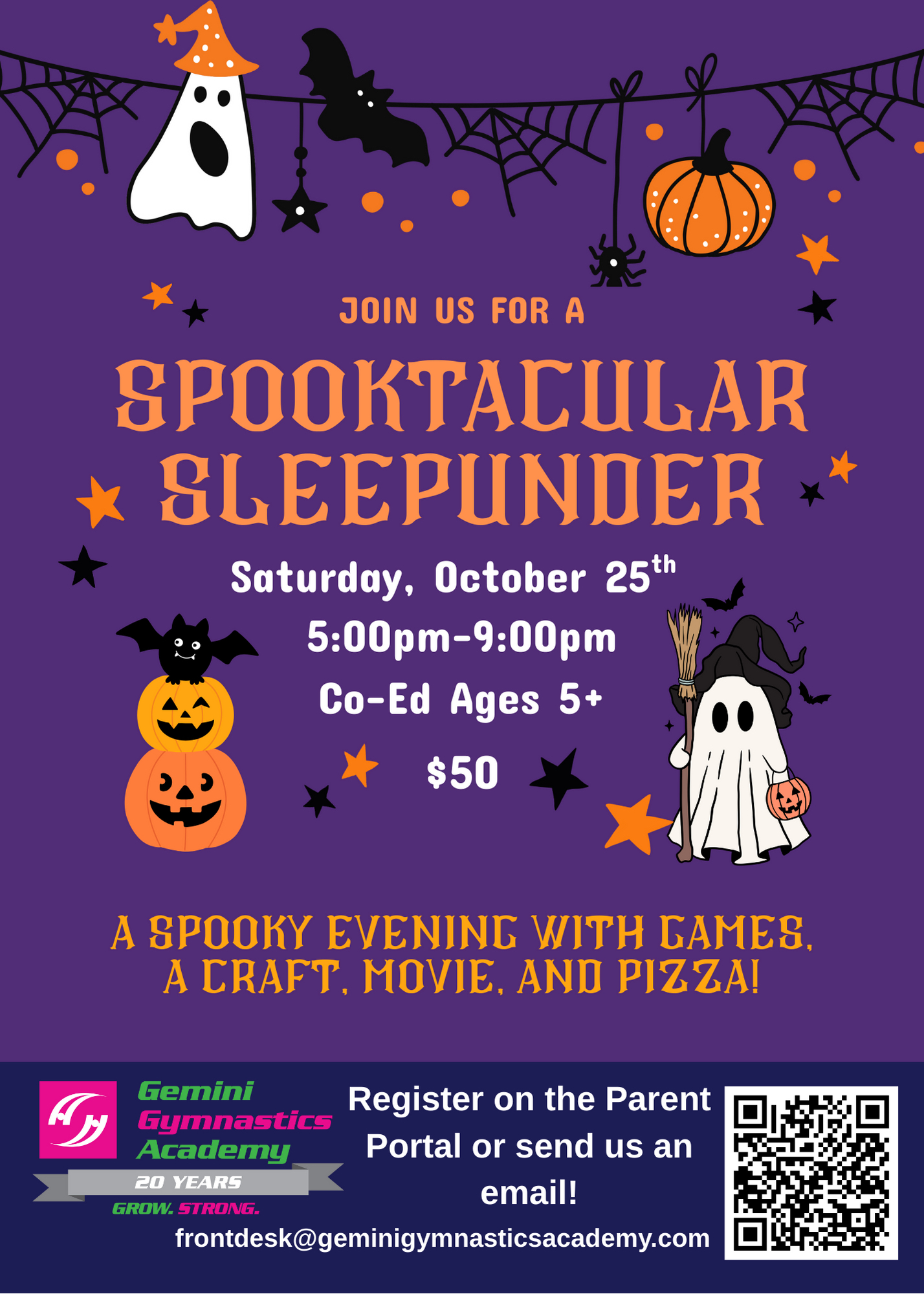 Join us for a Spooktacular Sleepunder. A spooky evening with games, a craft, movie, and pizza.
