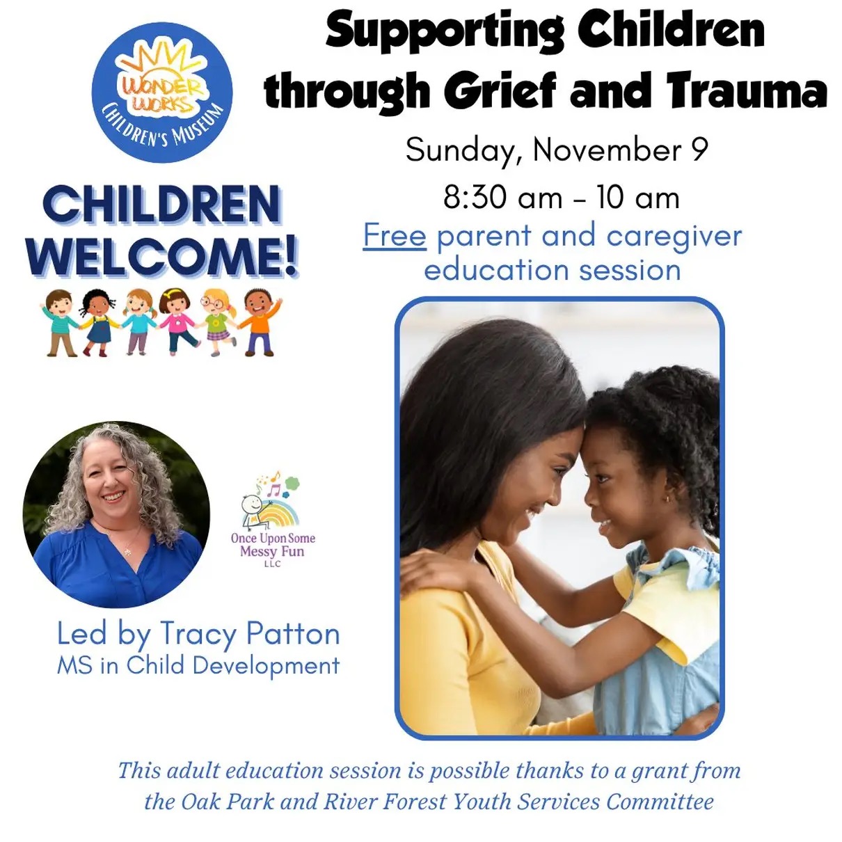 Join us for a free Parent Education Class on Supporting Children Through Grief and Trauma for Parents and Caregivers on November 9 from 8:30 – 10 am.