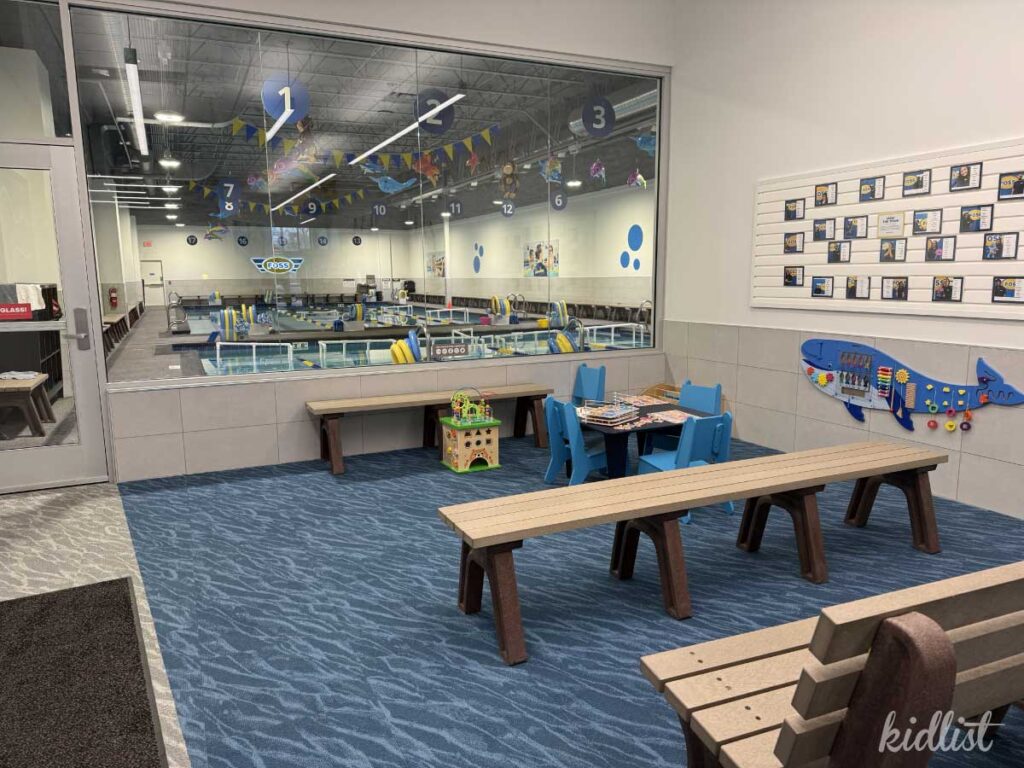 Parents and caregivers can watch lessons through the large viewing window, and the seating area now includes a sibling play space to help keep little ones entertained while they wait. It’s a small but thoughtful touch that makes a big difference for families attending lessons together.
