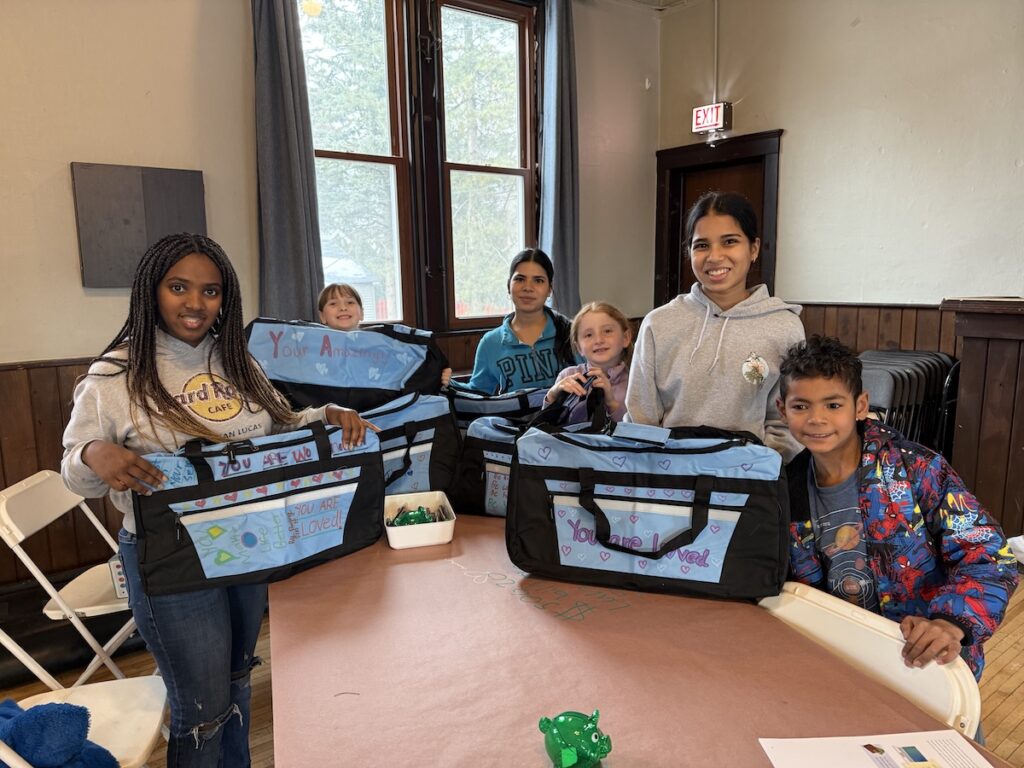 We try to keep the event accessible to everyone who wants to participate and also got feedback that shopping for toiletries, toys, and games to fill the bag with your kids was so fun and meaningful! Each ticket is $9.50 and includes a duffle bag, a place to gather, and decorating markers.