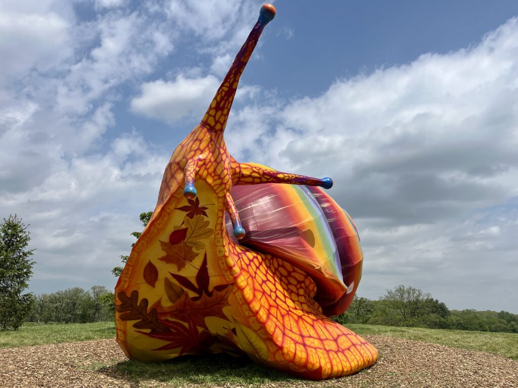 “An important goal for this exhibition is to make it as physically accessible as possible in an outdoor setting,” Scott said. “Four of the sculptures will be along paved, ADA-compliant paths near the Visitor Center.” The fifth sculpture, a rainbow-colored brittle button snail, will sit atop a berm visible along Interstate 88, where a piece from the Arboretum’s previous Troll Hunt exhibition (2018-2021) was a popular attraction.