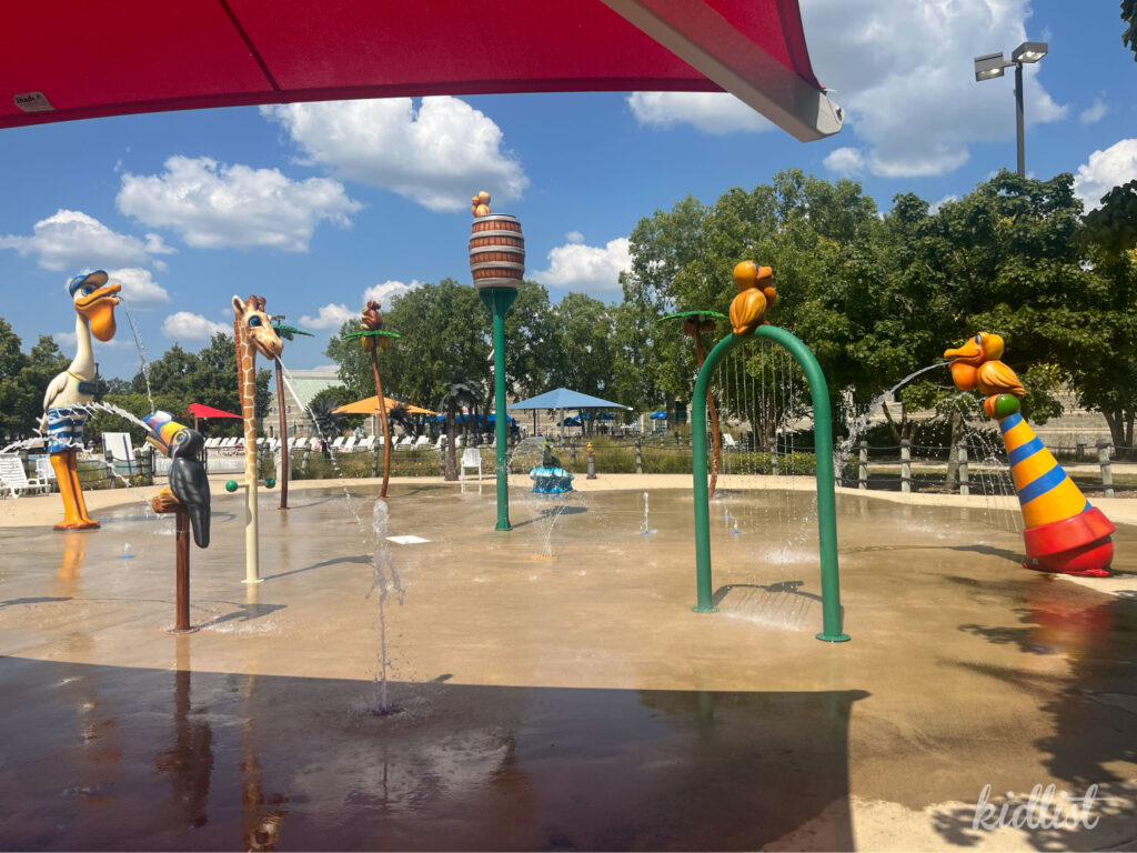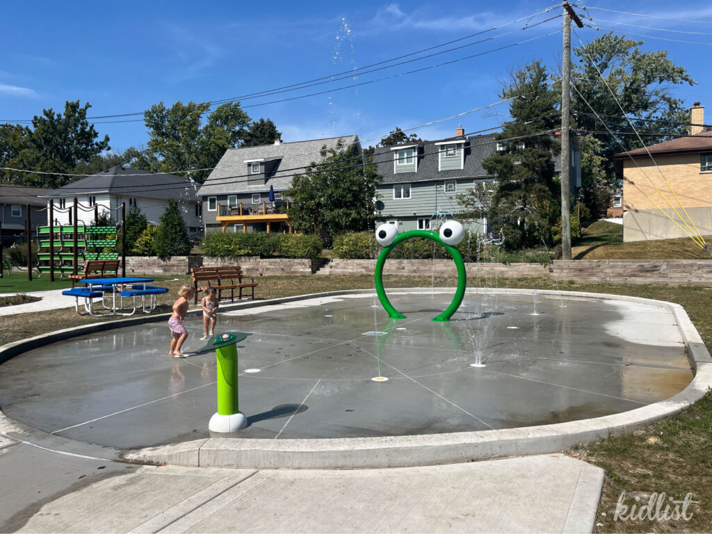 - Easy splash pad to pair with a trip to the Phillips Park Zoo, sunken gardens, and Mastodon Island Peninsula Playground