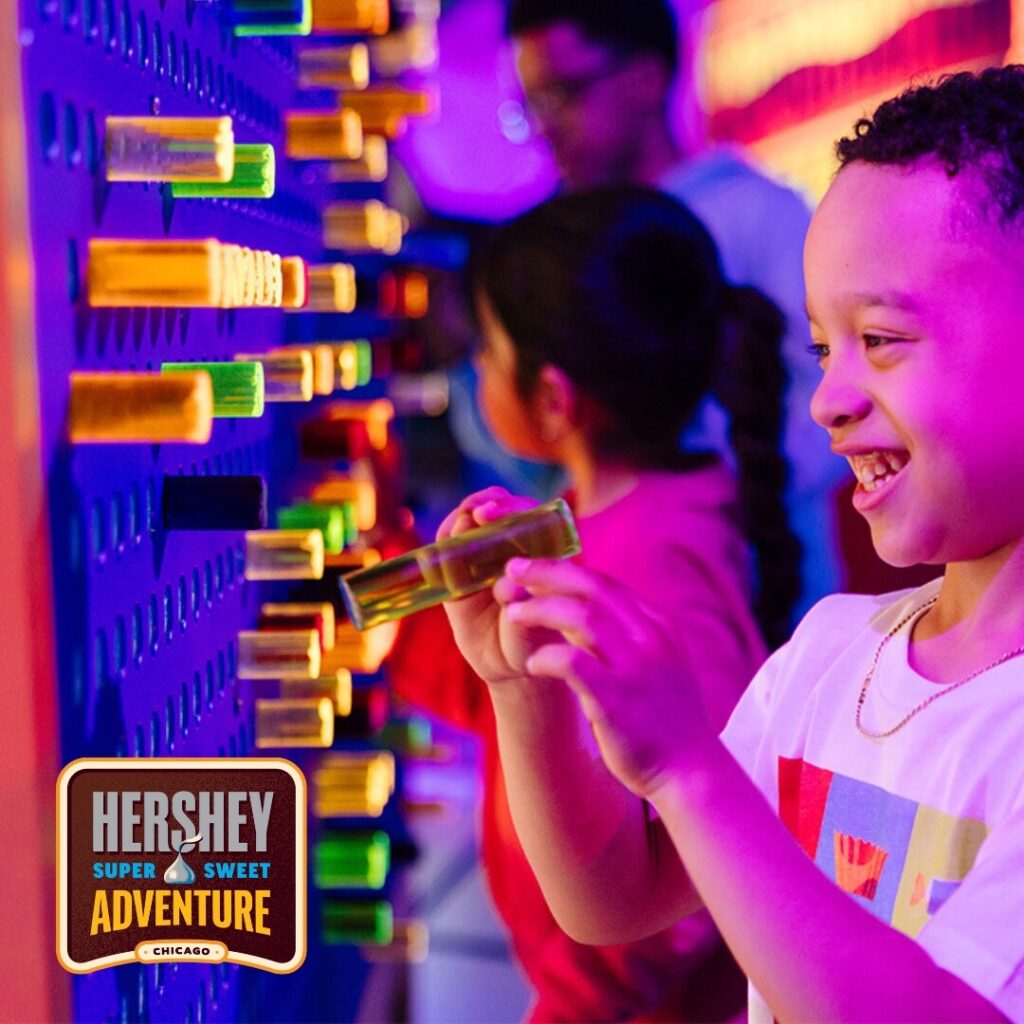 Inside Water Tower Place on Chicago’s Magnificent Mile, Hershey Super Sweet Adventure invites candy lovers of all ages to tinker, twist, and taste their way through a super sweet, story-based journey.