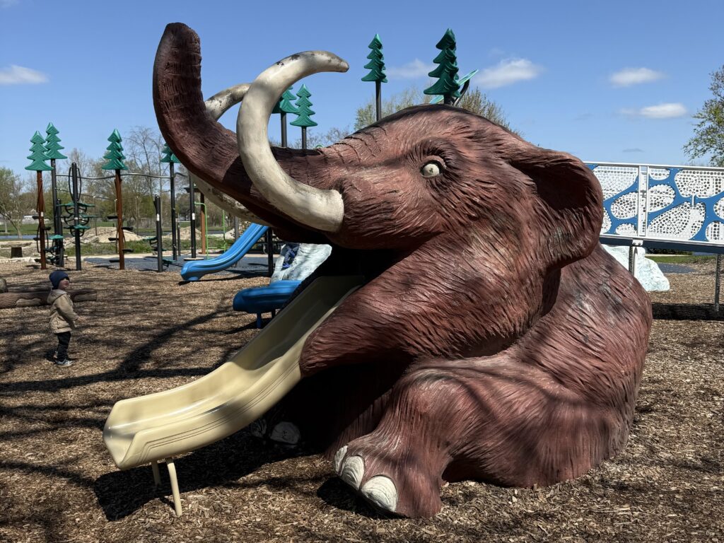 The Mastodon slide is a big hit with little ones because they can climb the couple stairs, then slide through the mouth. So fun!
