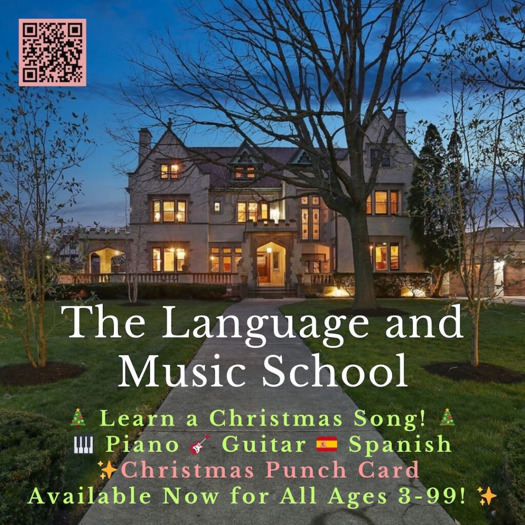The Language and Music School is offering a festive opportunity for individuals of all ages (3-99) to learn a Christmas song on various instruments like piano, guitar, drums, bass, violin. In addition to music lessons, the school also provides language courses in Spanish, French, Italian, German, Chinese and more.